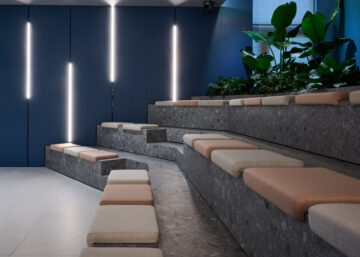 Uno spazio dinamico composto da vani che dialogano tra loro, uniti dal fil-rouge dell’occhio del visitatore che può attraversare questi ambienti visivamente, indovinando traiettorie dirette o sghembe.