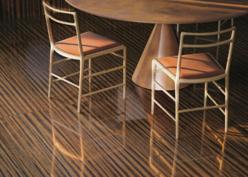 Con Canal Grande, siamo riusciti a ricreare su lastre in gres porcellanato la stessa profondità e l’effetto di tridimensionalità dei rivestimenti in mogano tipici delle esclusive imbarcazioni veneziane. La collezione rappresenta quindi una proposta totalmente inedita nel mondo delle superfici perché apre le porte all’utilizzo negli interior di rivestimenti utilizzati tipicamente solo nel mondo della nautica.