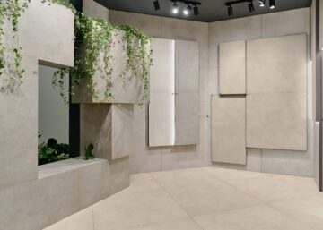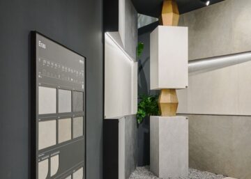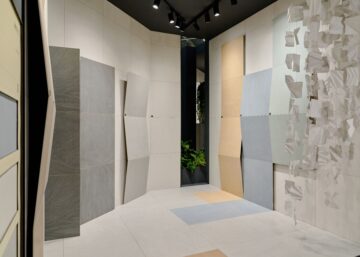 Durante la fiera abbiamo presentato Osmos, collezione effetto cemento, Ink, parte degli iconic design, Prestigio Kaleidos, collezione effetto marmo dalle mille sfumature, e l’effetto pietra Eras.