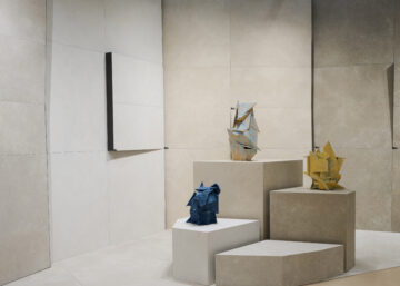 “Lo stand è stato pensato come una sorta di galleria d’arte, dove ogni collezione è stata trattata come un’installazione con un suo linguaggio proprio, studiato per esaltare le caratteristiche del prodotto. Lo stand è quindi organizzato come una sequenza di esposizioni, anche molto diverse tra loro, tenute insieme da un’architettura generale e coerente. Un forte accento è stato messo sulla collezione Cera, la più originale e creativa tra le novità presentate, posizionata al centro dello stand” (Studio Salaris).