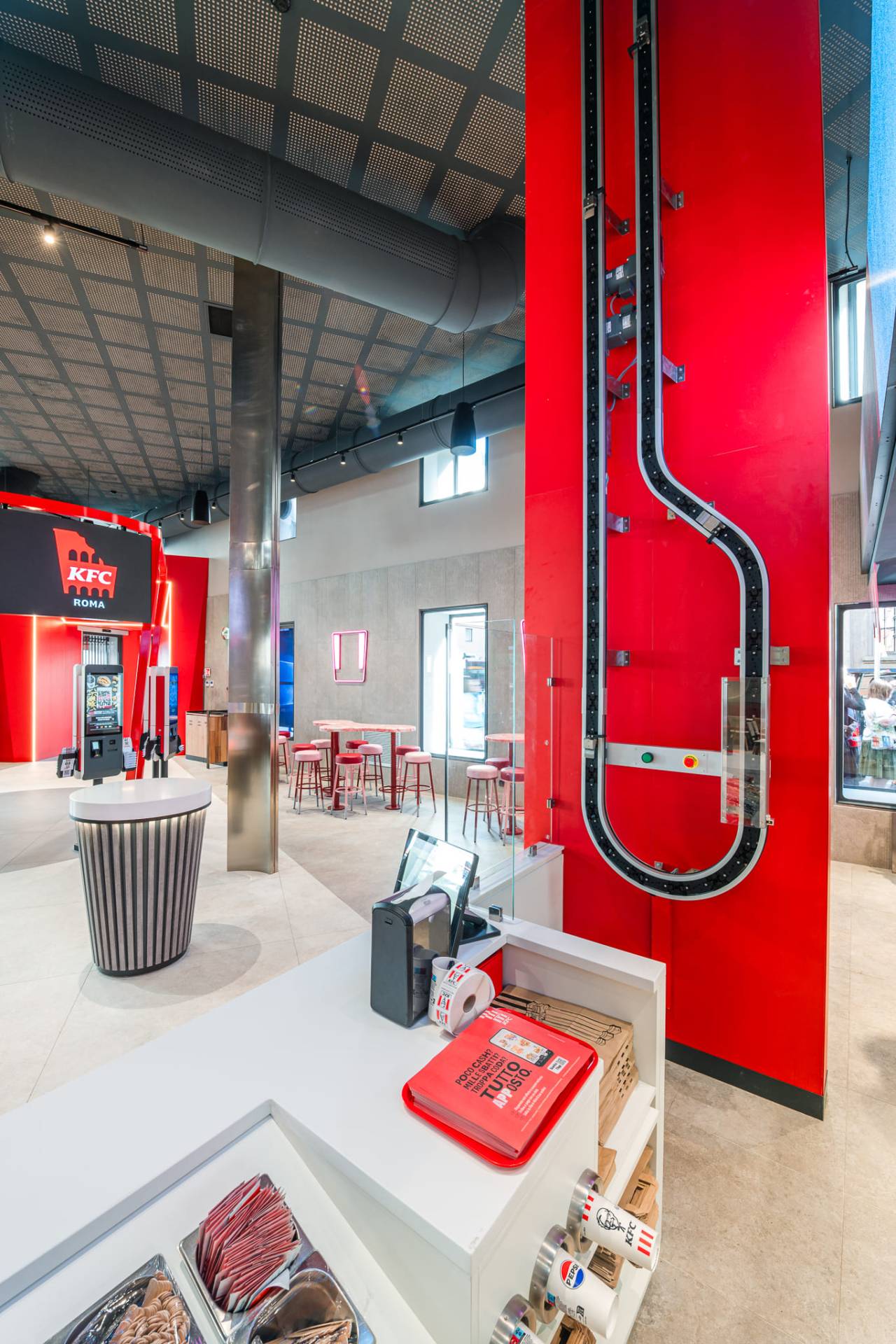 Per l’apertura del più grande Flagship europeo di KFC — uno spazio di 800 mq all'interno di uno storico palazzo romano — abbiamo operato come partner strategico a 360°. Abbiamo affiancato il team di costruzione di KFC gestendo ogni dettaglio delle finiture, dalle superfici standard alle piastrelle speciali su misura, coordinando l'intera catena di fornitura in un'area nota per l'estrema complessità logistica.